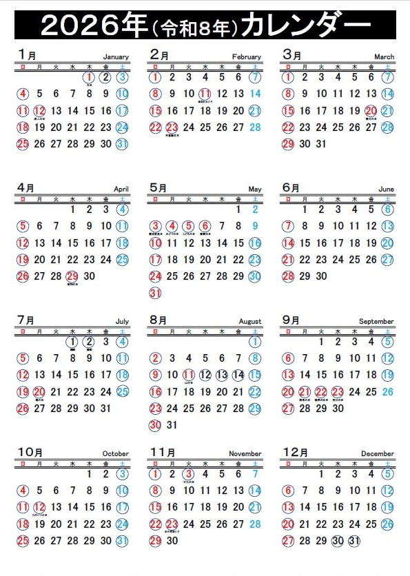 弊社の営業日を下記カレンダーの通りお知らせいたします。